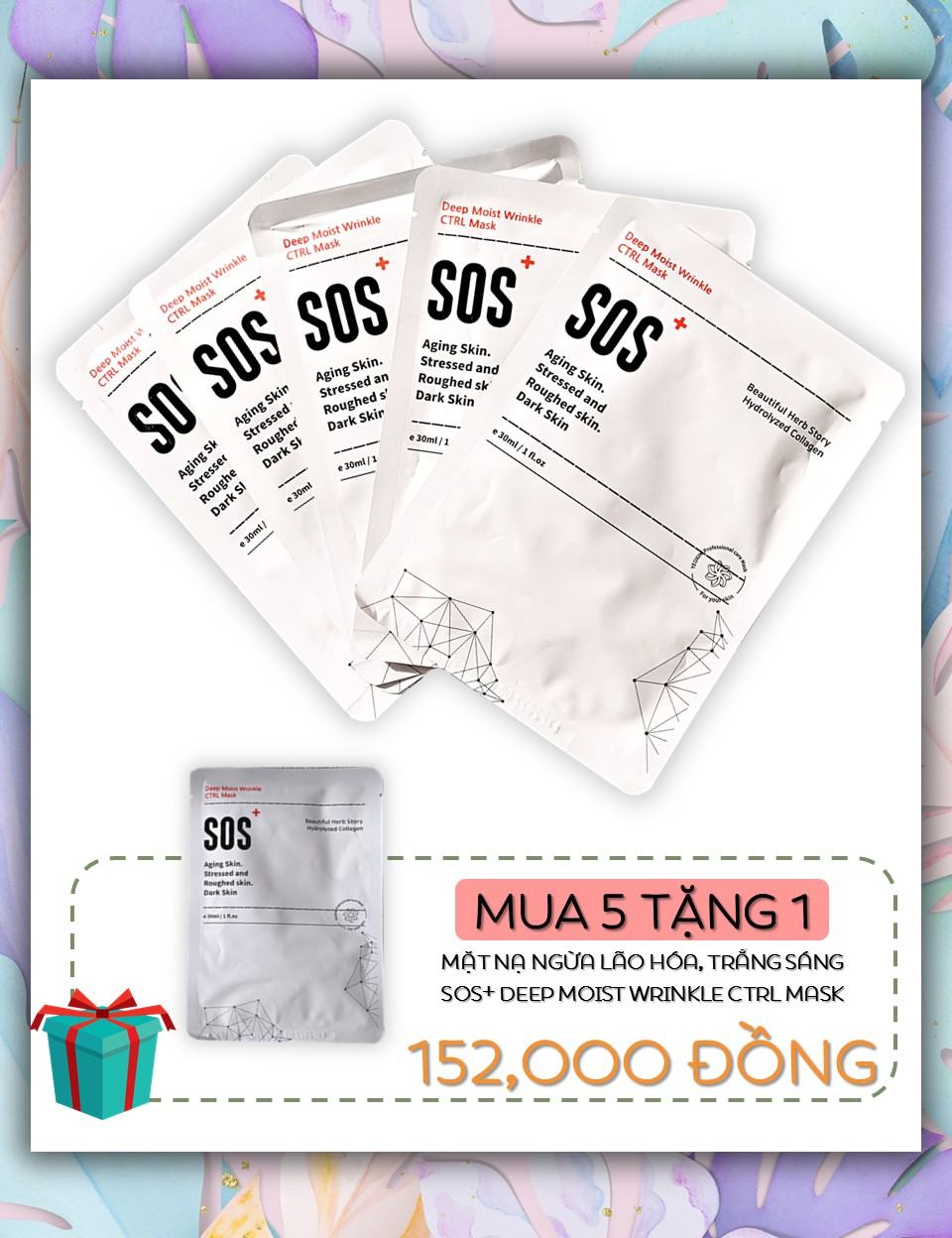 Nói đến mặt nạ, hẳn đây là 1 trong những sản phẩm chăm sóc da mà bất kỳ tín đồ làm đẹp nào cũng có trong tủ đồ trang điểm, chăm sóc da của mình. Là giải pháp cấp cứu cực kỳ nhanh chóng cho da với lượng dưỡng chất dồi dào, không chỉ hỗ trợ cấp ẩm ngay và liền cho da mà còn hỗ trợ giải quyết một số vấn đề khác trên da như ngăn ngừa lão hóa, dưỡng trắng da hay hạn chế mụn xuất hiện trên da. Hiểu được sự bức thiết trong việc sử dụng mặt nạ, ngày nay trên thị trường có vô vàn những loại mặt nạ khác nhau, với những công dụng riêng biệt và phù hợp cho từng loại da khác nhau. Vậy đâu sẽ là sản phẩm mặt nạ phù hợp cho bạn? Thế thì hôm nay chúng ta sẽ tìm hiểu về loại mặt nạ mà bất cứ loại da nào cũng cực kỳ cần thiết, đó chính là mặt nạ Deep Moist Wrinkle Ctrl Mask SOS. Cùng tìm hiểu xem em ấy có gì thần kỳ mà có thể cứu cánh cho làn da khô nhé.